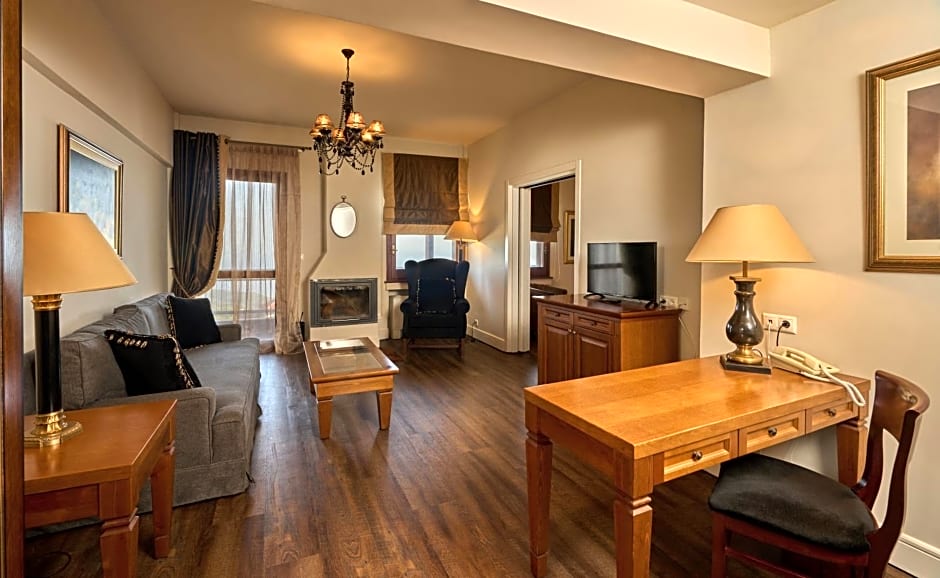 Fitted with carpeted floors, well-chosen furnishings and warm colors, this comfortably furnished suite with views over the pool, the sea or the Pagasetic Bay. Some units offer fireplace.